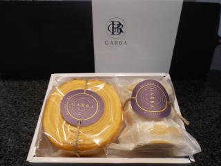地元みなかみ町に多く存在するブナの木をイメージしました。 ブナの木は、樹皮が灰白色できめが細かく独特の模様をしています。また、ブナの森は「ブナの森に水滴はいらない」と言われるほど、保水力が高いのが特徴です。 うるおい豊かな白いブナの木のようにイメージした、BUNAは表面をシュガーパウダーでまぶし、もちもち感を強調しております。 このバームクーヘンBUNAは自慢のもっちり感によってシュガーパウダーが良く絡み絶妙な味わいを出しています。 当社のバームクーヘンは、全て手焼きで手焼きならではの商品ですので、柔らかさなどにばらつきがありますが、味・品質には全く問題なく、本来の美味しさで味わうことができます。